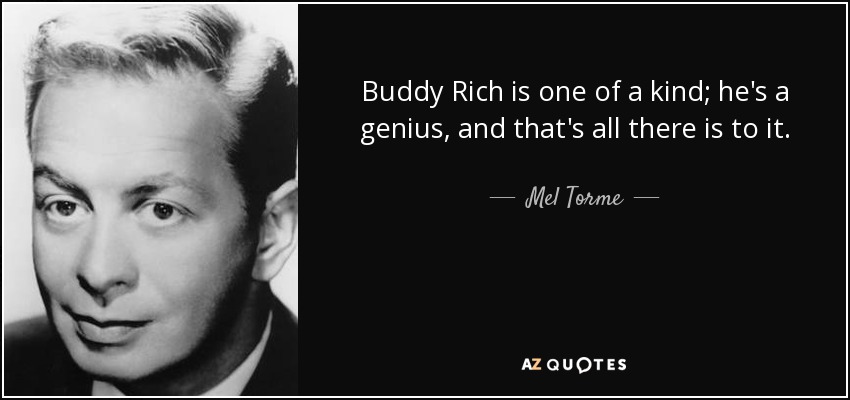 Mel Torme Quote Buddy Rich Is One Of A Kind He S A Genius